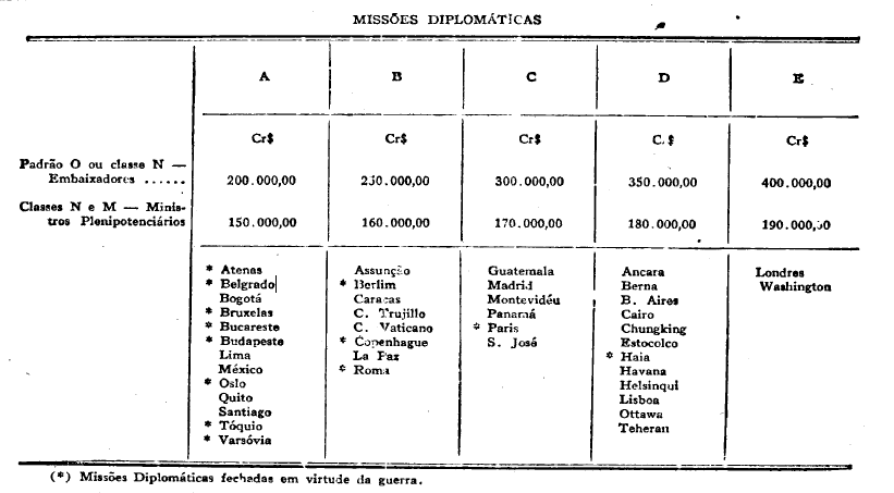 Retifica a tabela de representação aprovada pelo decreto n. 11.452, de 2 de fevereiro de 1943