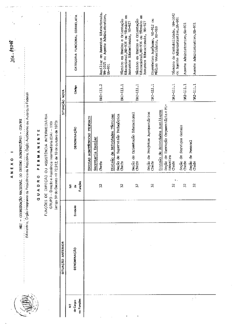 Art. 1º - São criadas funções, na forma do Anexo I deste decreto, para composição da Categoria Direção Intermediária, código: DAI-111, do Grupo-Direção e Assistência Intermediárias, código: DAI-110, do Quadro Permanente da Coordenação Nacional do Ensino Agropecuário - COAGRI.