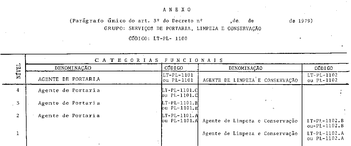 Art . 3º - O Grupo-Serviços de Portaria, Limpeza e Conservação é constituído pelas Categorias Funcionais a seguir indicadas: