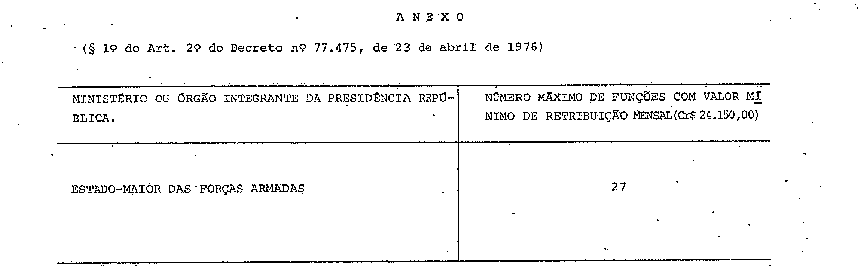 Art . 1º, Fica Alterado, a partir de 1º de janeiro de 1981, o Anexo do Decreto nº 77.475, de 23 de abril de 1976 , na forma indicada no Anexo deste Decreto, para o fim de incluir o Estado-Maior das Forças Armadas.
