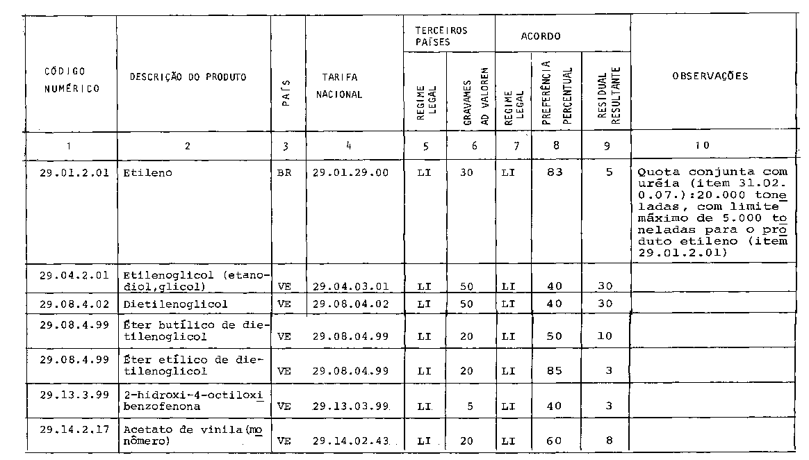 Artigo 1º - A partir de 15 de junho de 1982, as importações dos produtos especificados no Protocolo Nacional anexo a este Decreto, originários da Venezuela dos países de menor desenvolvimento econômico relativo, (Bolívia, Equador e Paraguai), ficam sujeitas aos gravames condições estipuladas no Anexo único deste Decreto, obedecidas as cláusulas e dispositivos estabelecidos no citado Protocolo.
