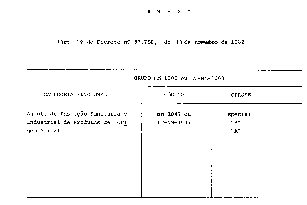 Art. 1º Fica incluída no Grupo-Outras "Atividades de Nível Médio, estruturado pelo Decreto nº 72.950, de 17-de outubro de 1973 , com as alterações posteriores, a categoria funcional de Agente de Inspeção Sanitária e Industrial de Produtos de Origem Animal, Código NM-1047 ou LT-NM-1047.