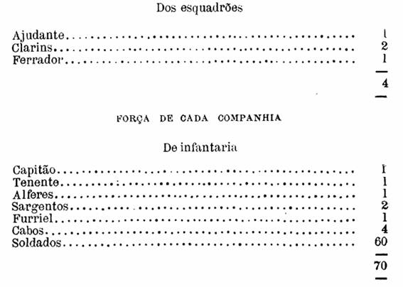 O Tenente Coronel será o Commandante particular dos Esquadrões, e o Sargento-mór dos Batalhões.