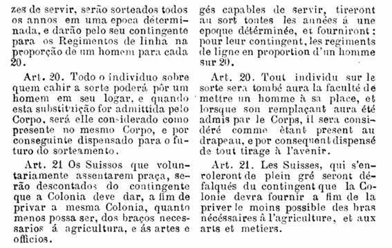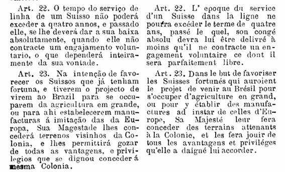 Condições pelas quaes Sua Magestade Fidelissima Ha por bem conceder no seu Reino do Brazil o estabelecimento de uma Colonia de suissos, composta de 100 familias, a que se refere o Decreto acima.