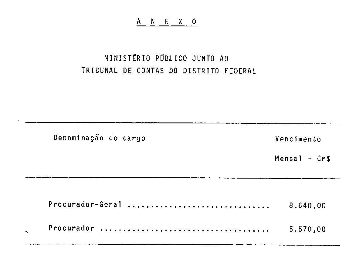 Art. 1º Os vencimentos dos membros do Ministério Público junto ao Tribunal de Contas do Distrito Federal são os constantes do Anexo desta Lei.