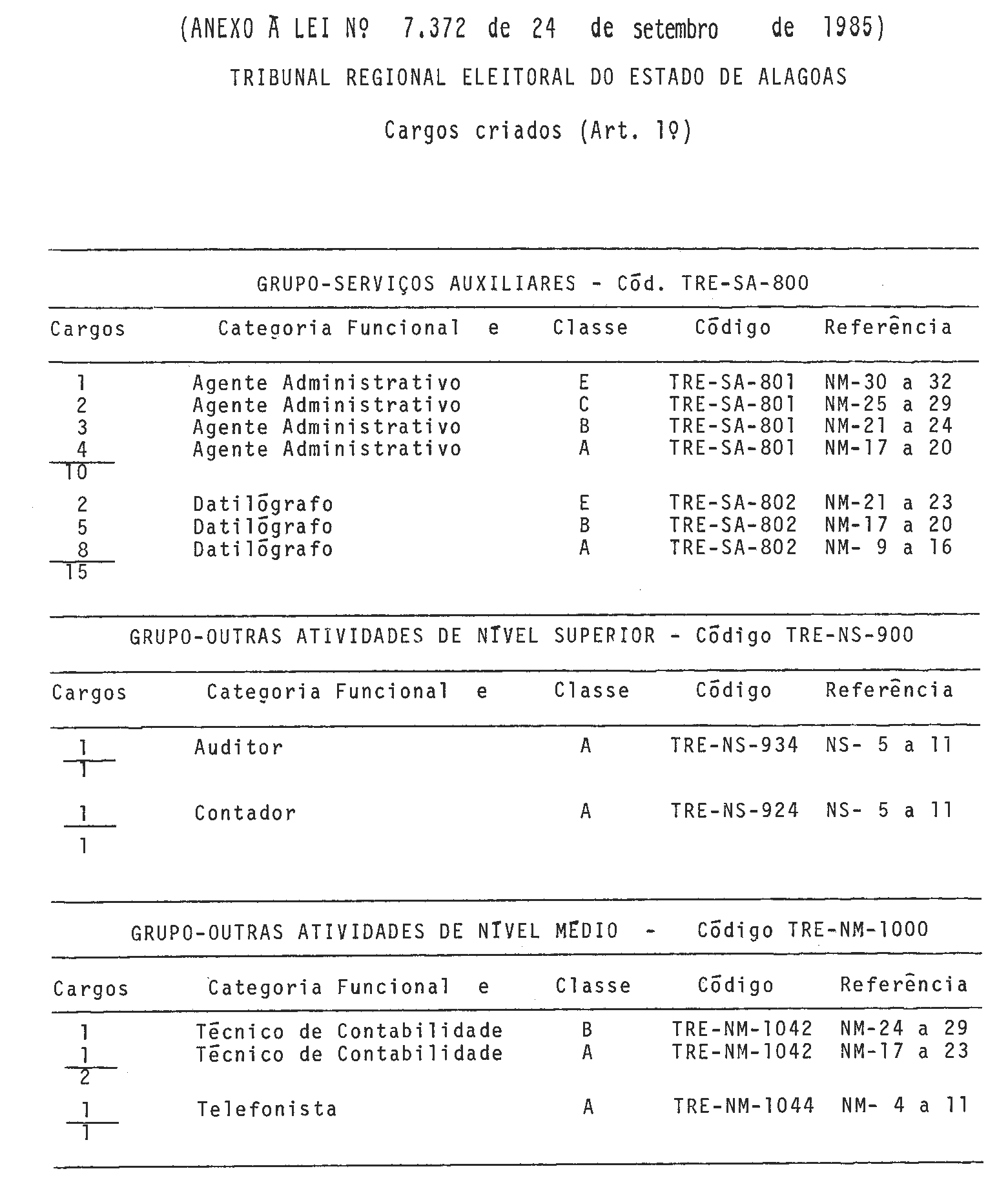 LEI No 7.372, DE 24 DE SETEMBRO DE 1985.