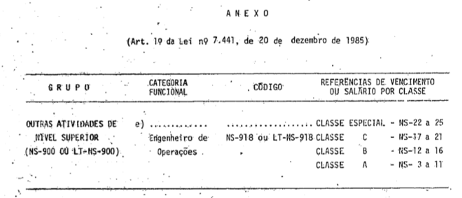 Art. 1º - A Categoria Funcional de Engenheiro de Operações, código NS-918 ou LT-NS-918, do Grupo-Outras Atividades de Nível Superior, a que se refere a Lei nº 5.645, de 10 de dezembro de 1970, fica alterada na forma constante do Anexo desta Lei.
