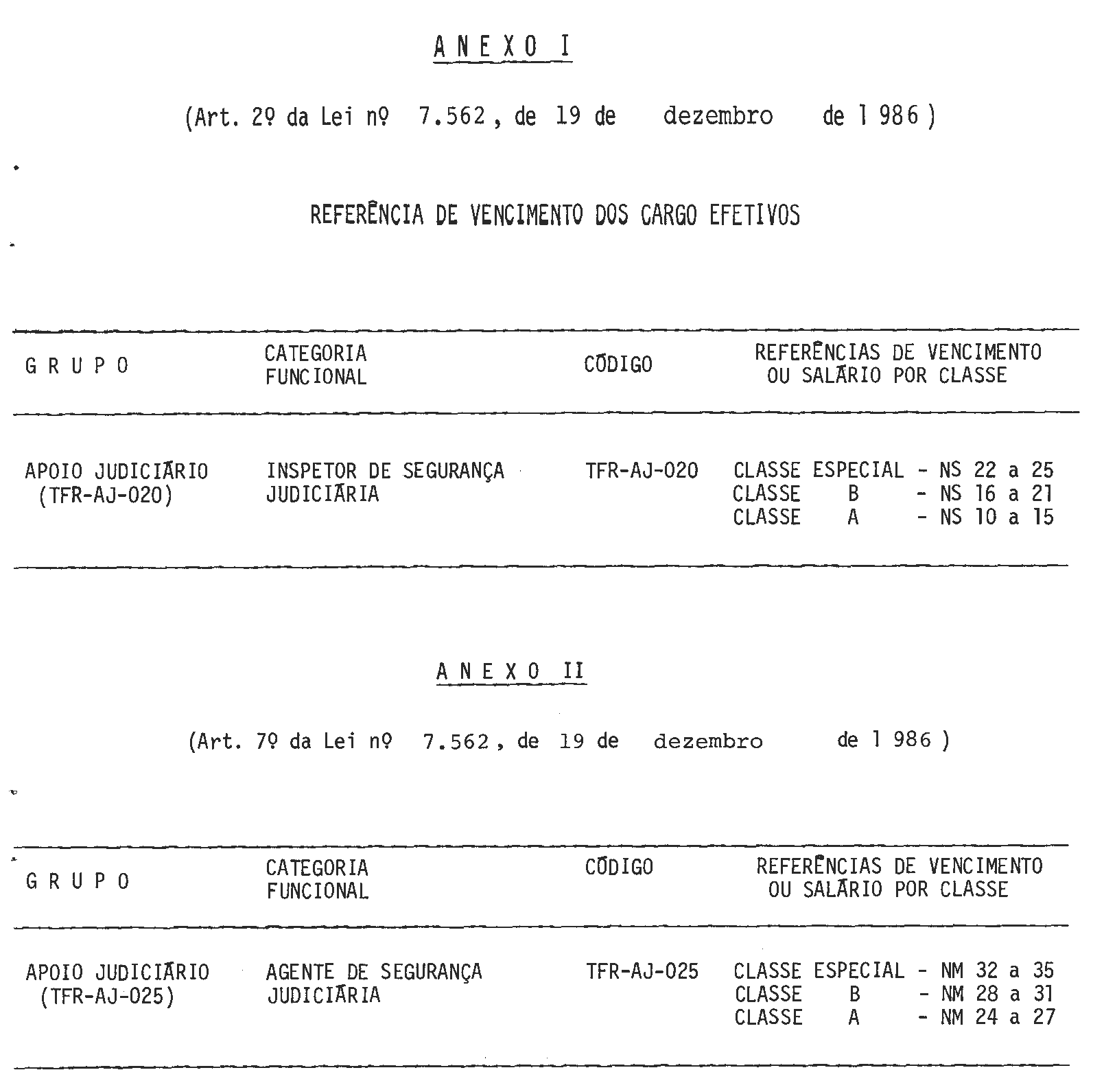 Art. 6º A Categoria Funcional de Agente de Segurança Judiciaria, Código TFR-AJ-025, do Grupo-Atividade de Apoio Judiciário da Secretaria do Tribunal Federal de Recursos, passa a ser estruturada na forma constante do Anexo II desta lei.