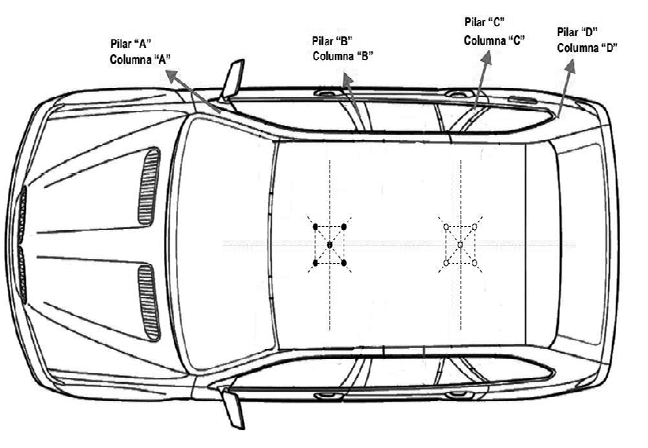 b.2) Aplicação de aço inoxidável balístico moldado conforme a carroceria do veículo, sendo instalados nas colunas A, B, C e D, longarina e travessas do teto.