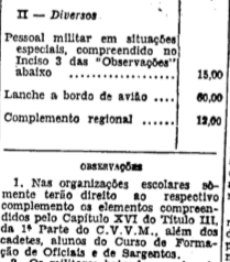 Art. 1º Fica aprovada a Tabela de Fixação dos Valores dos Complementos à ração comum, para a Aeronáutica, organizada na conformidade do que preceitua o art. 89, letra "b", da Lei nº 1.316, de 20 de janeiro de 1951 (Código de Vencimentos e Vantagens dos Militares).