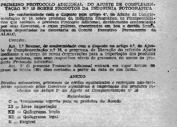 Dispões sobre a execução do Primeiro Protocolo Adicional do Ajuste de Complementação 18, sobre produtos da Indústria Fotográfica, concluído entre a Argentina, o Brasil e México.