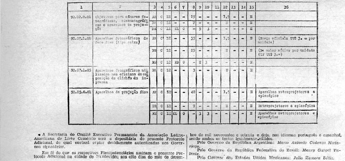 CONSIDERANDO que os Plenipotenciários da Argentina, do Brasil e do México, com base nos dispositivos acima citados, assinaram em Montevidéu, no dia 8 de dezembro de 1972, o Primeiro Protocolo Adicional do Ajuste de Complementação nº 18 sobre produtos da Indústria Fotográfica;