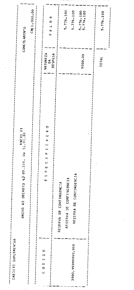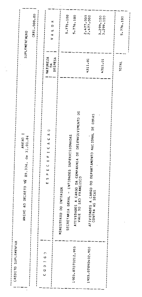 Abre ao Ministério do Interior, em favor da Secretaria Geral - Entidades Supervisionadas, o crédito suplementar no valor de Cr$ 5.776.100.000,00, para reforço de dotações consignadas no vigente Orçamento. |