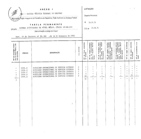 Médio, código: LT-NM-1000, da Tabela Permanente da Escola Técnica Federal do