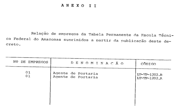 2º - Os empregos relacionados no Anexo II ficam suprimidos para o fim de