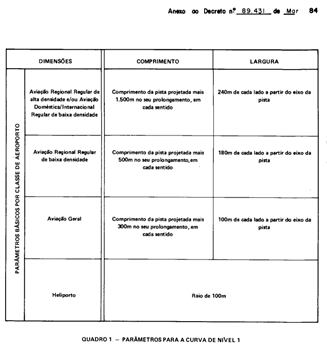 Parágrafo único. Os parâmetros para a curva de nível 1 para as pistas classe 1, 2, 3 e 4 são especificados no Quadro 1 e sua configuração consta das Figuras 1 e 3.