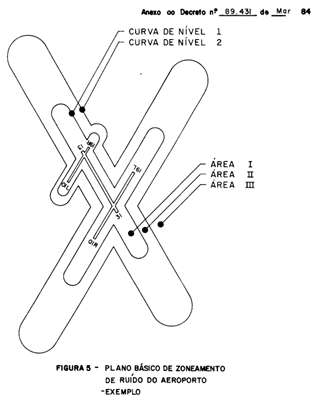 Art. 11 - Para a aplicação do Plano Básico de Zoneamento de Ruído visando um aeroporto que possua duas ou mais pistas, utiliza-se o Plano para cada pista isoladamente, sendo que o Plano Básico de Zoneamento de Ruído, para o aeroporto, será dado pela composição das curvas referentes a cada pista (Figura 5).