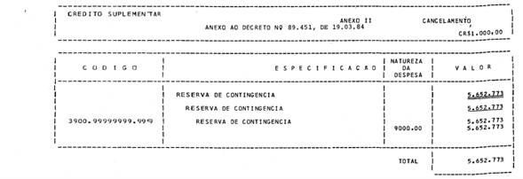 DECRETO No 89.451, DE 19 DE MARÇO DE 1984