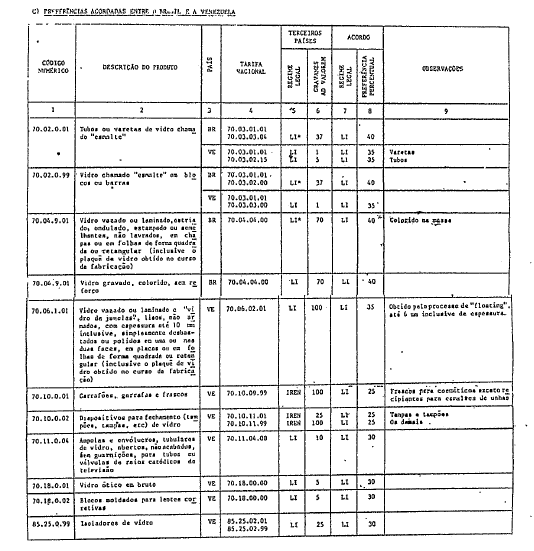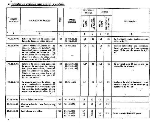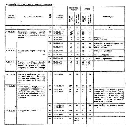 Artigo 1º. A partir de 28 de novembro de 1984, as importações dos produtos especificados no Anexo I do Acordo Comercial nº 27, subscrito no âmbito da indústria do vidro, originárias do México e da Venezuela ou dos países classificados na ALADI como de menor desenvolvimento econômico relativo, ou seja, da Bolívia, do Equador e do Paraguai, ficam sujeitas aos gravames e às condições estipuladas no mencionado Anexo, obedecidas as normas de origem estabelecidas no Anexo II do referido instrumento. O aludido Acordo terá uma duração de nove anos, podendo ser revisto cada três anos ou a pedido de qualquer uma das Partes.