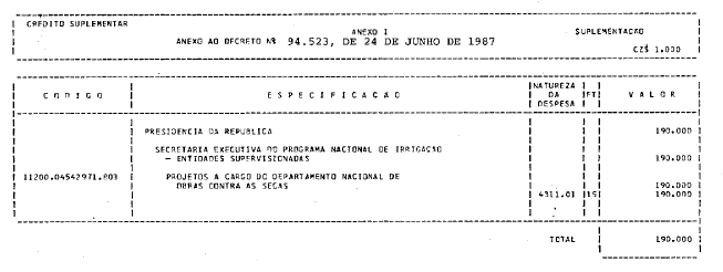 crédito suplementar de CZ$ 190.000.000,00 (cento e noventa milhões de cruzados),