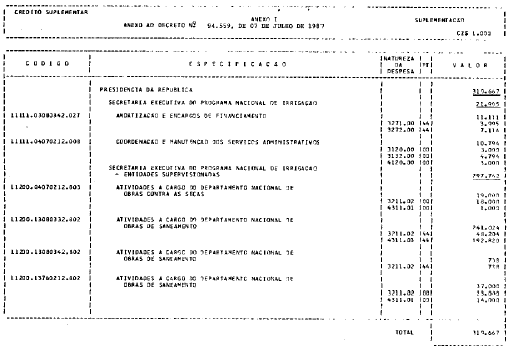 orçamentárias, o crédito suplementar de CZ$ 319.667.000,00 (trezentos e dezenove