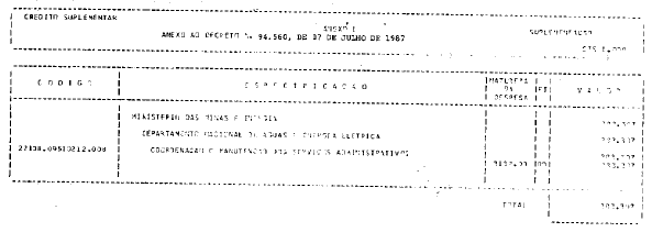 Departamento Nacional de Águas e Energia Elétrica - DNAEE, o crédito suplementar