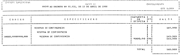- Órgãos Regionais do Trabalho, o crédito suplementar de CZ$ 160.000.000,00