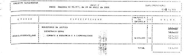 Art. 1° - Fica aberto ao Ministério da Justiça, em favor da Secretaria-Geral,