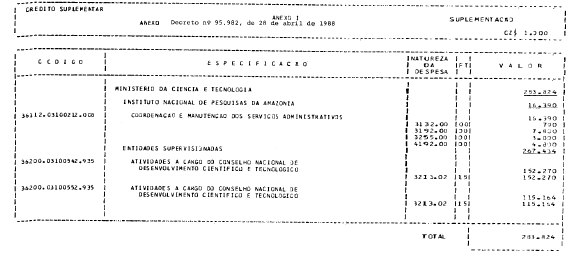 DECRETO No 95.982, DE 28 DE ABRIL DE 1988.
