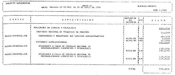 Art. 1° - Fica aberto ao Ministério da Ciência e Tecnologia, em favor do