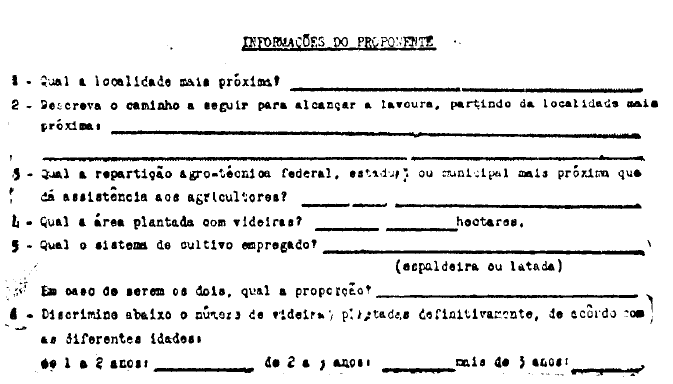 O vinhedo segurado pela presente apólice foi descrito e caracterizado à vista das informações do Segurado, constantes da proposta na qual deve declarar, de modo exato e completo, a área da plantação, sua localização e extensão, quantidade de videiras plantadas e as respectivas idades aproximadas, o fim a que se destina a produção e quaisquer outras informações que possam contribuir para identificar a plantação segurada.