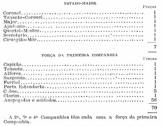 1.º O novo Regimento de Cavallaria de Milícias n. 5 se comporá de oito companhias, annexanlo-se as quatro já existentes, e que formam os esquadrões da Serra, ás outras quatro, que se mandarão novamente levantar, nas Freguezias de Inhomirim, Valença e da Parahyba, as quatro primeiras continuarão a ter a mesma numeração, que já têm, e a quinta e sexta serão as da Freguezia de Inhomirim, a setima de Valença e a oitava da Parahyba.