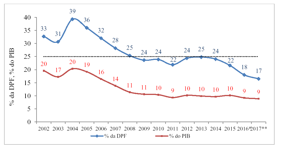 a) estimativas de despesas com amortização, juros e encargos da dívida pública mobiliária federal interna e da dívida pública federal externa, em 2017, separando o pagamento ao Banco Central do Brasil e ao mercado;