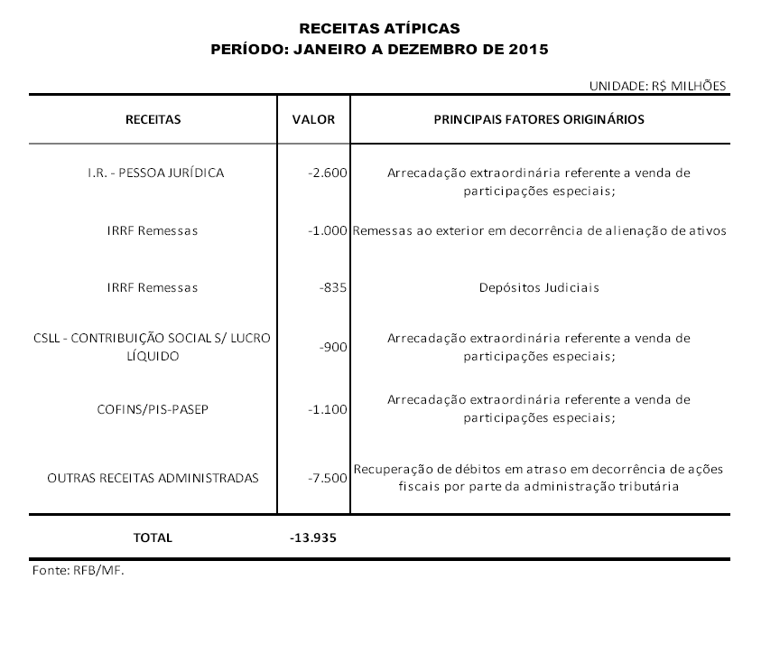 a) das receitas de compensações, por item de receita administrada pela Secretaria da Receita Federal do Brasil, e respectivos valores, arrecadadas nos exercícios de 2014, 2015 e 2016, este mês a mês, até junho; e