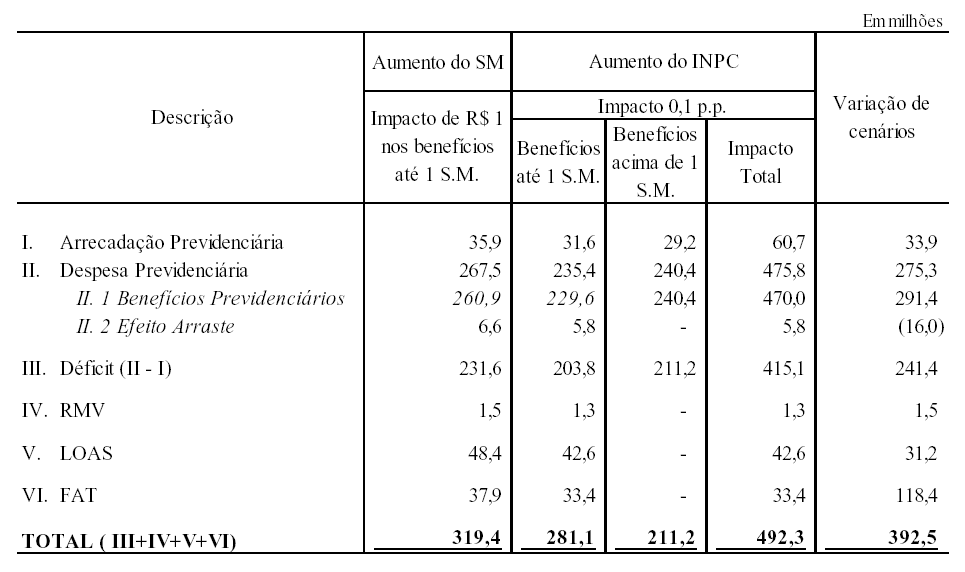 XIX - estimativas das receitas e das despesas adicionais, decorrentes do aumento do salário mínimo em 1 (um) ponto percentual e em R$ 1,00 (um real);