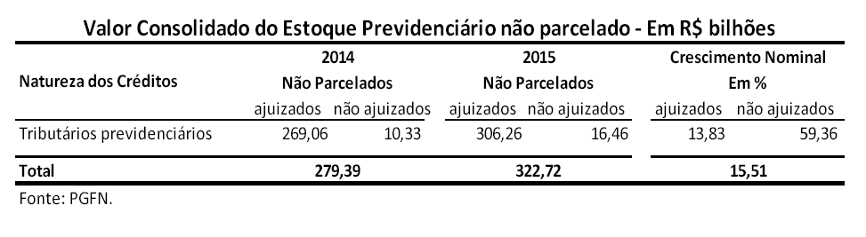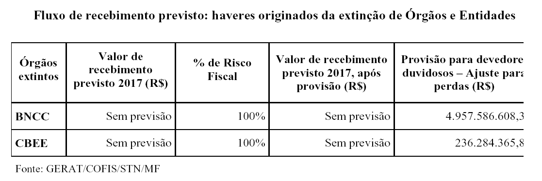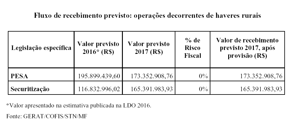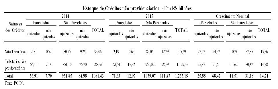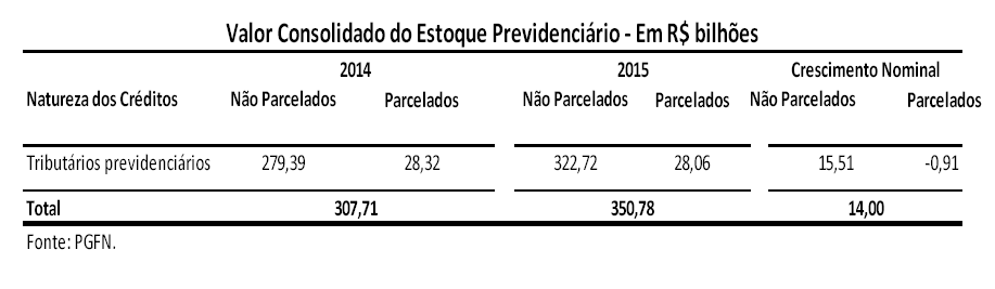 XVII - estoque e arrecadação da Dívida Ativa da União, no exercício de 2015, e as estimativas para os exercícios de 2016 e 2017, segregando-se por item de receita e identificando-se, separadamente, as informações do Regime Geral de Previdência Social;