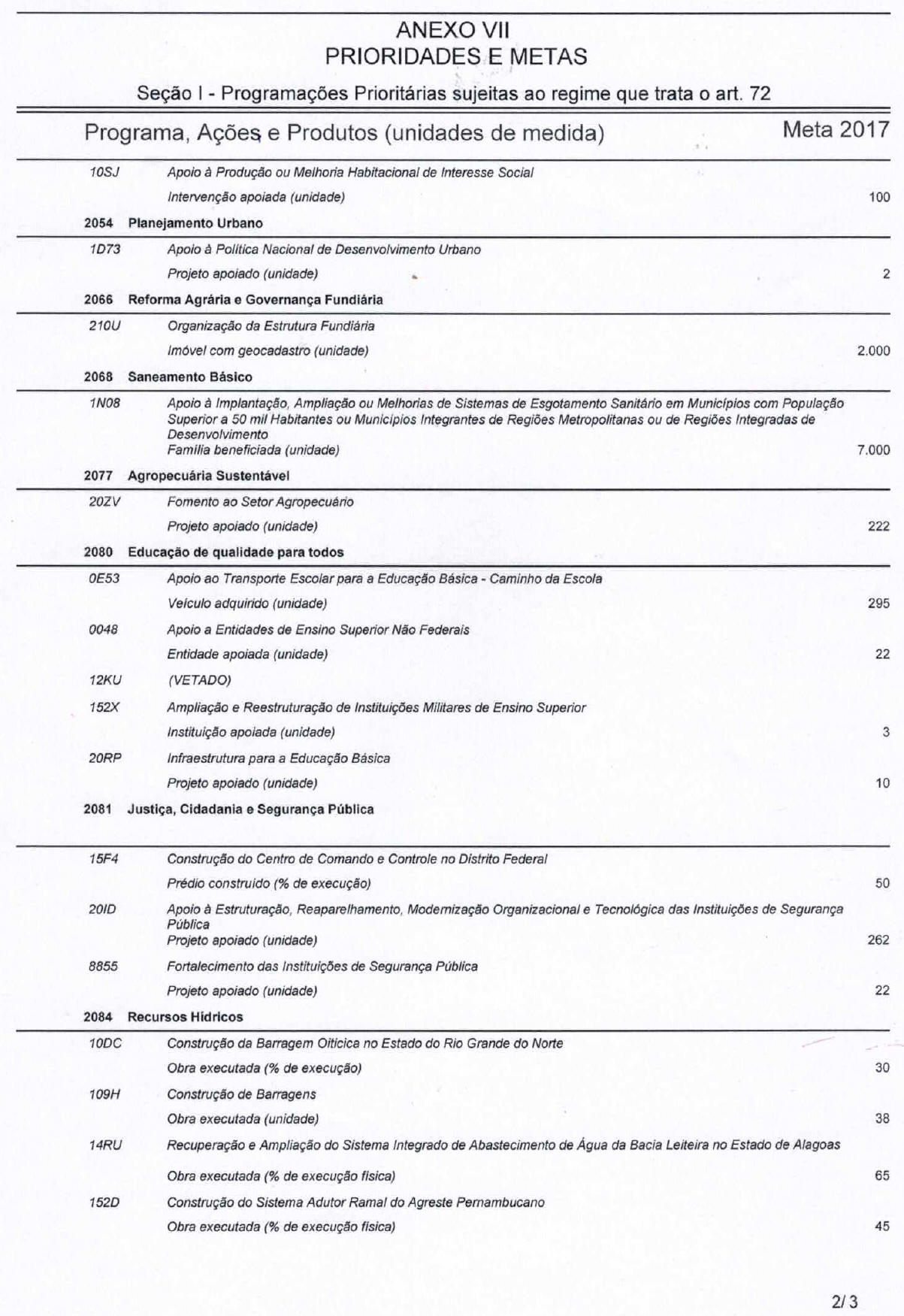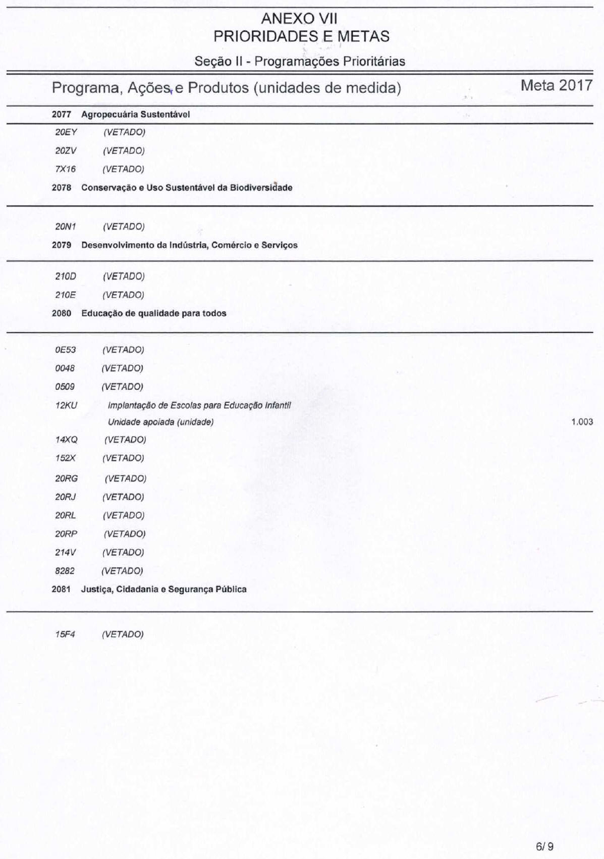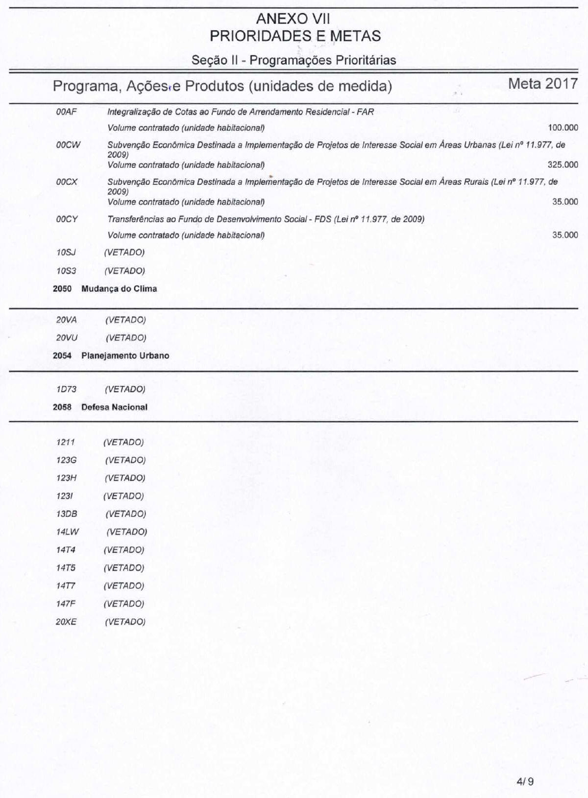 c) categoria de programação, nos termos do art. 5o, § 1o, desta Lei, que irá atender às despesas em 2017;