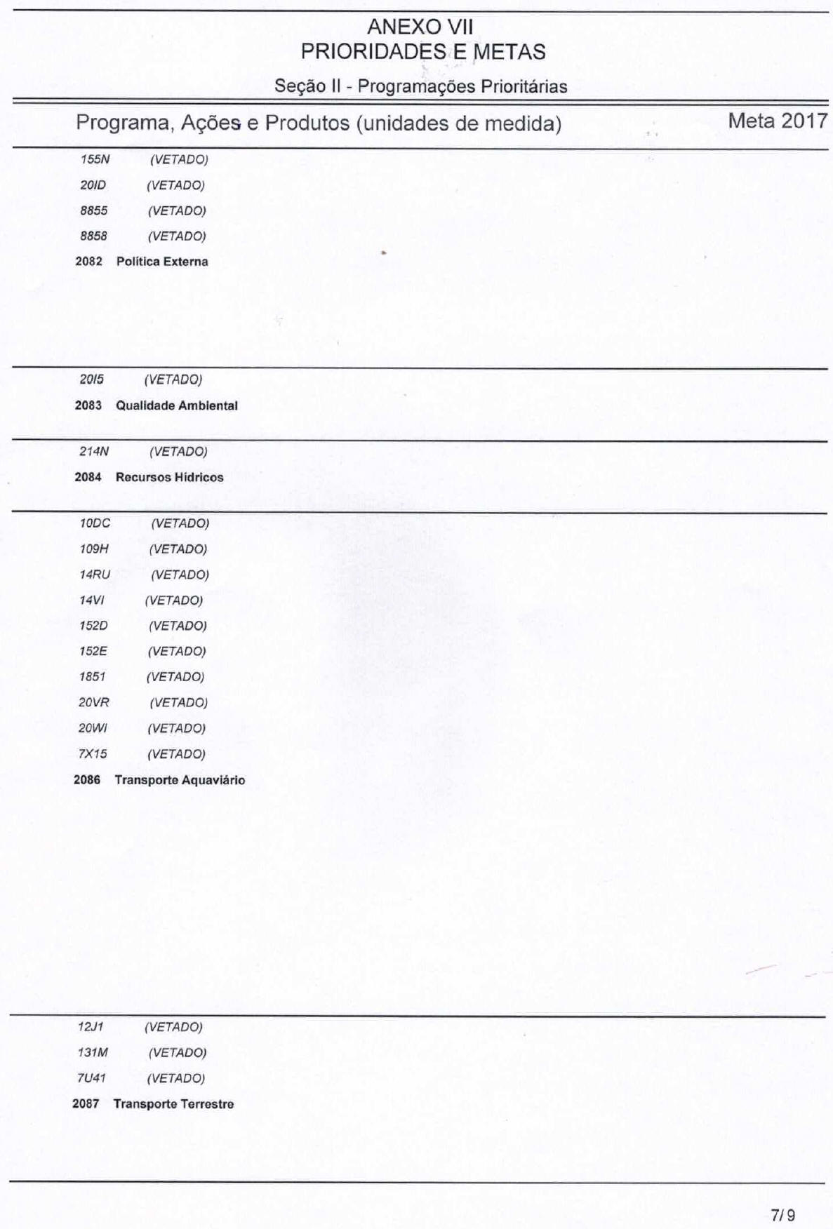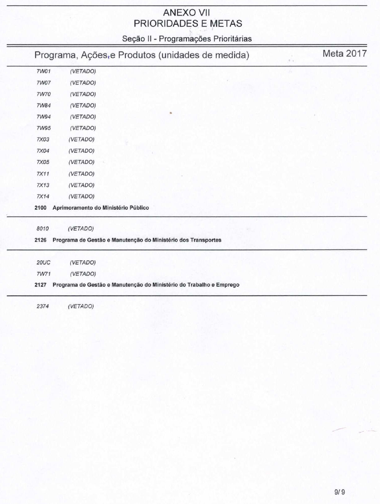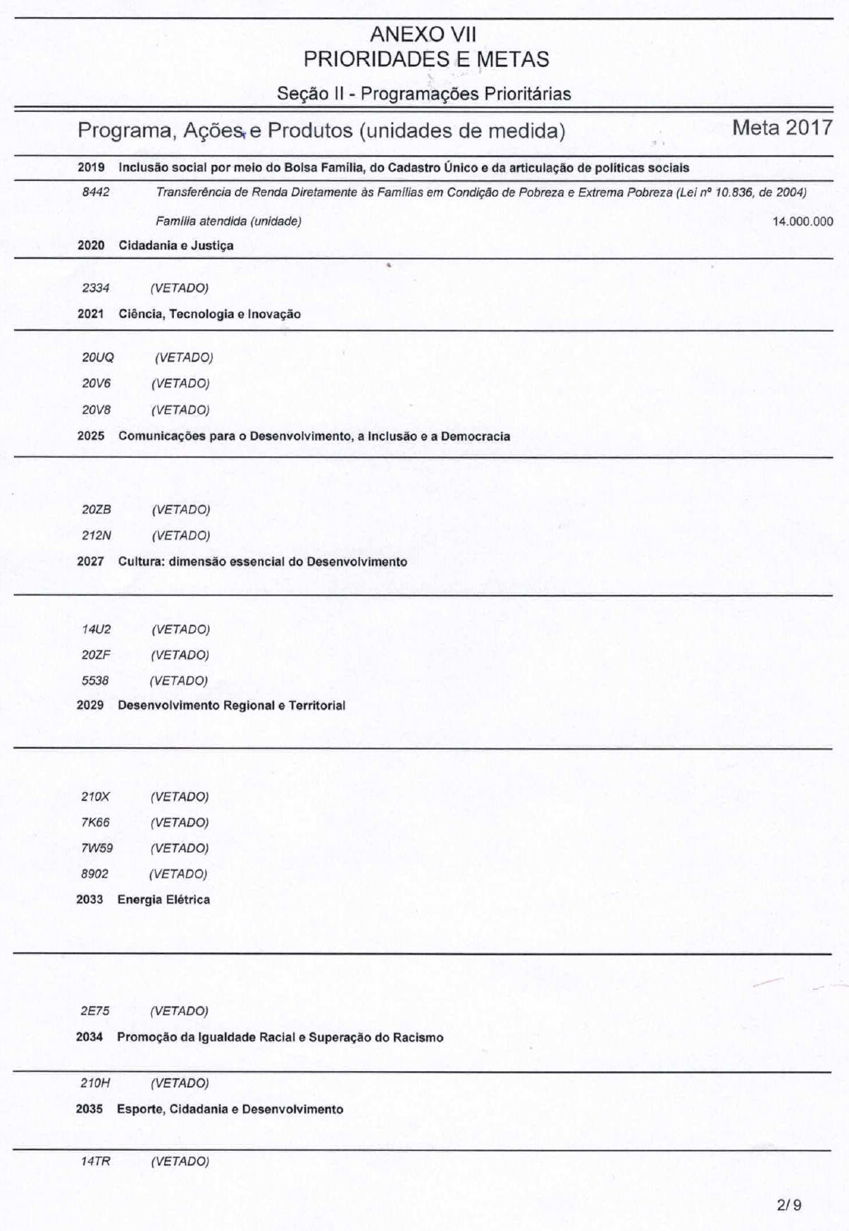 c) categoria de programação, nos termos do art. 5o, § 1o, desta Lei, que irá atender às despesas em 2017;