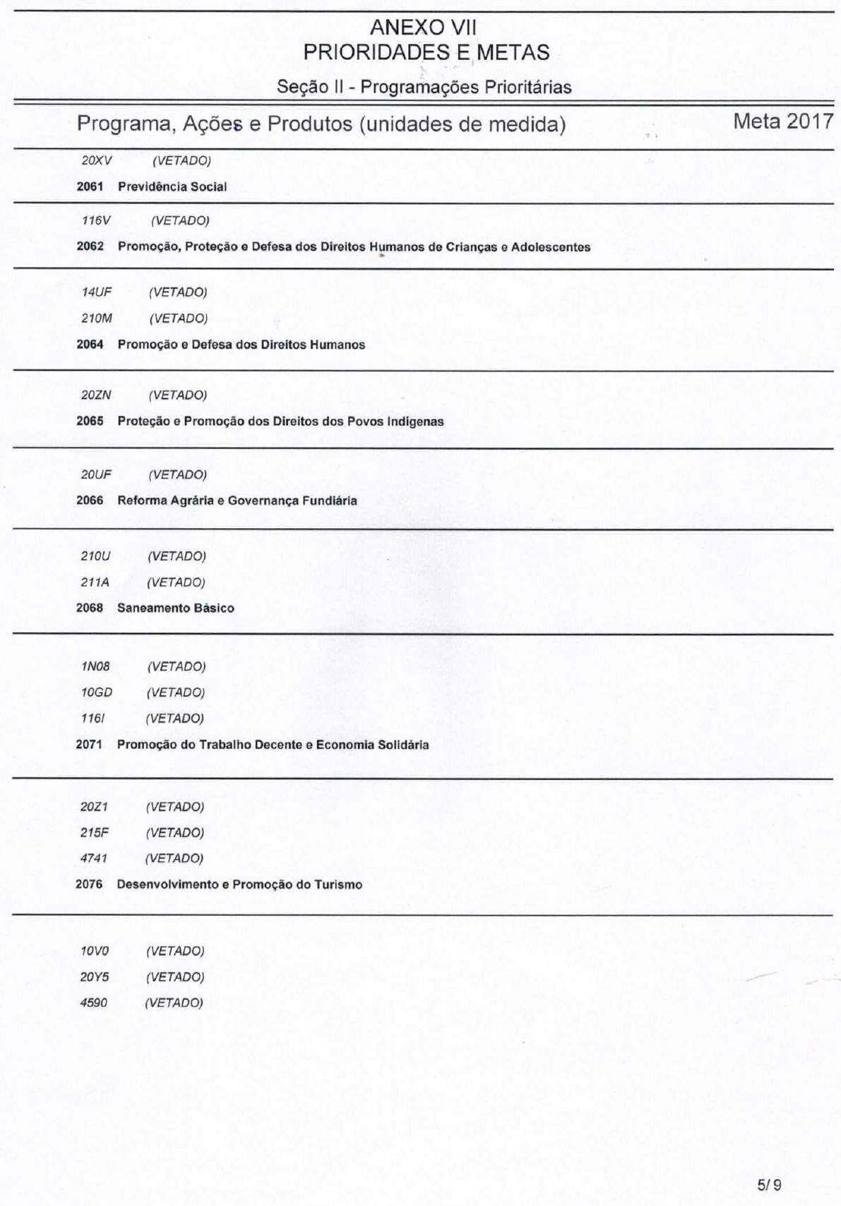 5. (VETADO); e