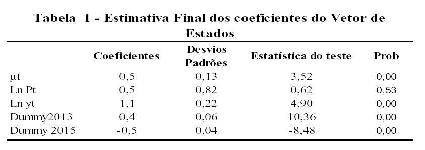 1 A metodologia de modelos estruturais decompõe uma série temporal em termos de suas componentes não-observáveis, as quais têm uma interpretação direta. Podemos assumir a decomposição clássica na qual uma série pode ser vista como a soma da componente de tendência (µt), sazonalidade ( γt), cíclica (δt) e erro (ver Harvey, A. C. Forecasting, Structural Time Series Models and the Kalman Filter. Cambridge: Cambridge University Press, 1989). Escrevendo esses modelos no formato estado-espaço, podemos utilizar o filtro de Kalman, que permite que tais componentes sejam estocásticos. Esta metodologia é bastante útil, pois, além de permitir a estimação dos componentes tendência, ciclo e sazonal, permite testar se os seus respectivos padrões são constantes ou variáveis no tempo, tomando como base a significância das variâncias dos componentes ou hiperparâmetros. Além disso, essa metodologia permite a inclusão de variáveis explicativas ou intervenções com variáveis Dummy.