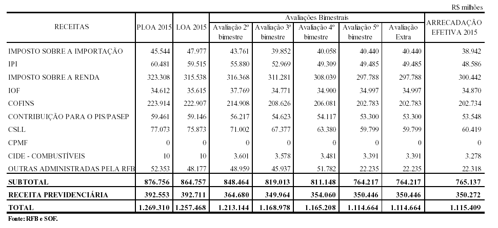 1. brutas e líquidas de restituições, administradas pela Secretaria da Receita Federal do Brasil, inclusive aquelas referentes à contribuição dos empregadores e trabalhadores para o Regime Geral de Previdência Social, neste caso desdobrada em contribuição patronal sobre a folha de pagamento, contribuição previdenciária sobre a receita bruta, compensação prevista na Lei no 12.546, de 14 de dezembro de 2011, e demais, com os exercícios de 2015 a 2017 apresentados mês a mês, destacando para 2017 os efeitos da variação de índices de preços, das alterações da legislação, inclusive das propostas de alteração na legislação, que se encontrem em tramitação no Congresso Nacional, de iniciativa do Poder Executivo, e dos demais fatores que influenciem as estimativas;
