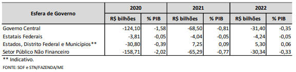 § 3º A projeção de resultado primário para os Estados, o Distrito Federal e os Municípios é de deficit de R$ 30.800.000.000,00 (trinta bilhões e oitocentos milhões de reais).