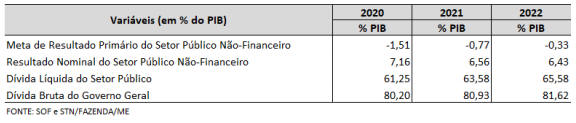 Tabela 3: Projeções de Variáveis Fiscais