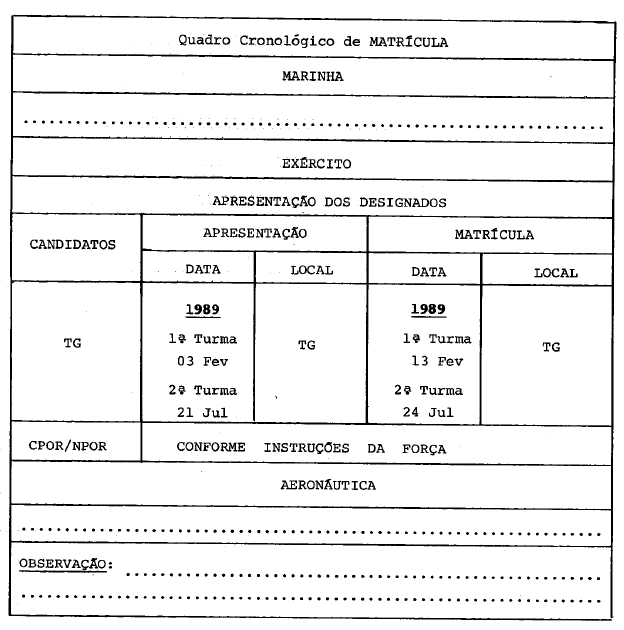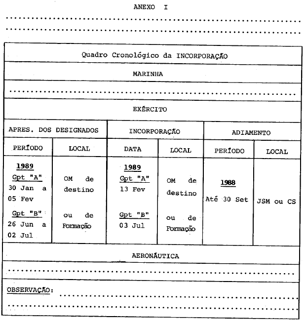 Convocação para o Serviço Militar Inicial nas Forças Armadas no ano de 1989,