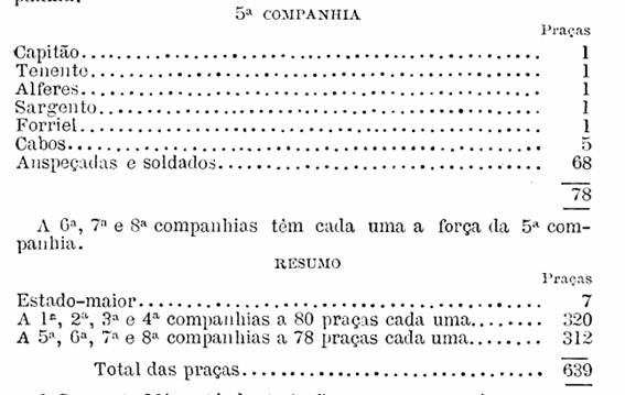 1.º O Regimento de Cavallaria do Milícias n. 4 se comporá de oito companhias reduzindo-se a este numero as 14 já existentes que formarão o Corpo de Cavallaria das Villas de Rezende e de S. João do Principe, da maneira seguinte: