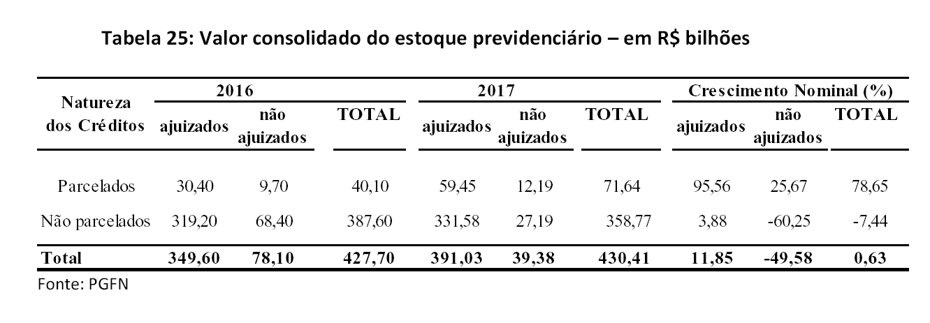 Importa destacar que a Dívida Bruta do Governo Geral, que inclui Governo Federal, Instituto Nacional do Seguro Social (INSS), governos estaduais e municipais, atingiu R$4.854,7 bilhões (74,0% do PIB) em dezembro de 2017, permanecendo em trajetória ascendente.