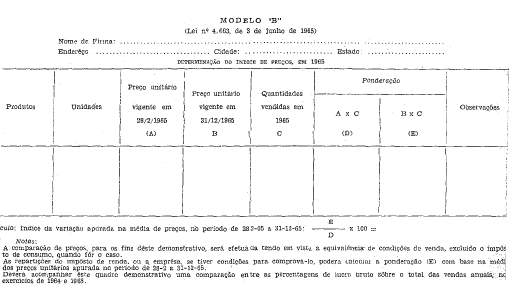 § 1º Ficam também dispensadas da elaboração do demonstrativo previsto no anexo modêlo “A” as emprêsas que, pela simples listagem dos preços unitários de venda de seus produtos demonstrarem que nenhum dêles sofreu aumento superior a 10% (dez por cento), entre 28 de fevereiro e 31 de dezembro de 1965, ou que declararem haver aumentado o preço médio de vendas, durante o ano de 1964, em mais de 86% (oitenta por cento).