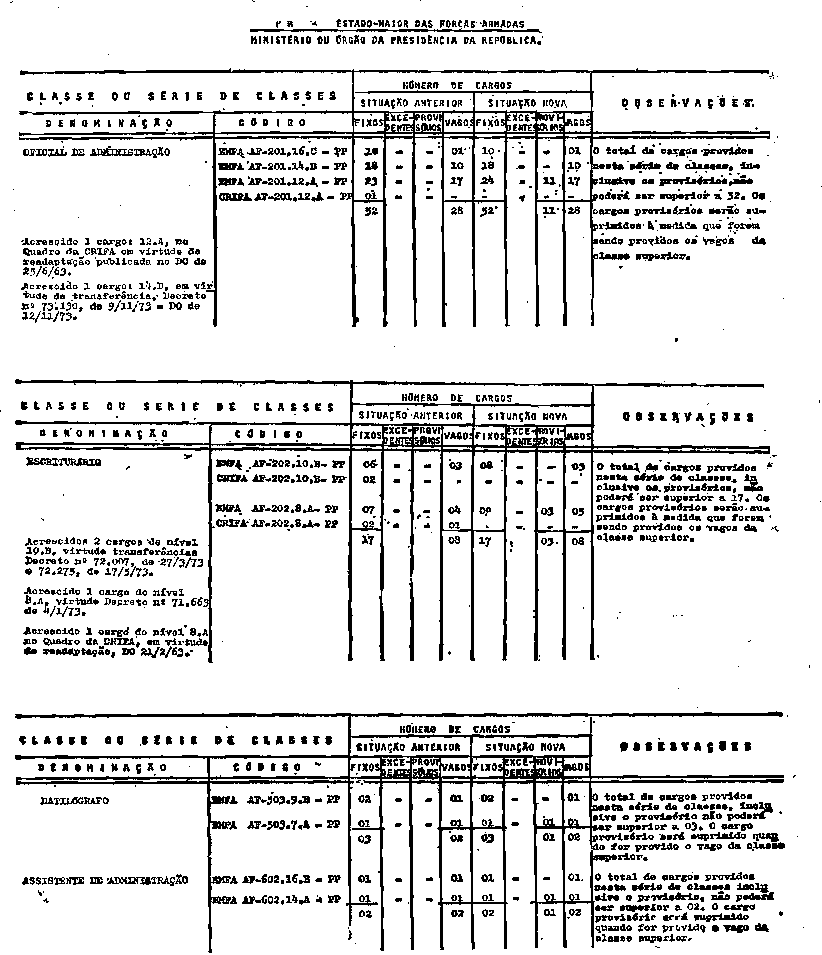 | Inclui no Quadro de Pessoal do Estado - Maior das Forças Armadas (EMFA), os cargos da Comissão da Readaptação dos Incapazes das Forças Armadas e dá outras providências. |