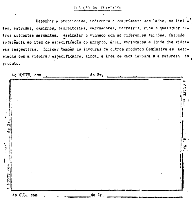 O vinhedo segurado pela presente apólice foi descrito e caracterizado à vista das informações do Segurado, constantes da proposta na qual deve declarar, de modo exato e completo, a área da plantação, sua localização e extensão, quantidade de videiras plantadas e as respectivas idades aproximadas, o fim a que se destina a produção e quaisquer outras informações que possam contribuir para identificar a plantação segurada.