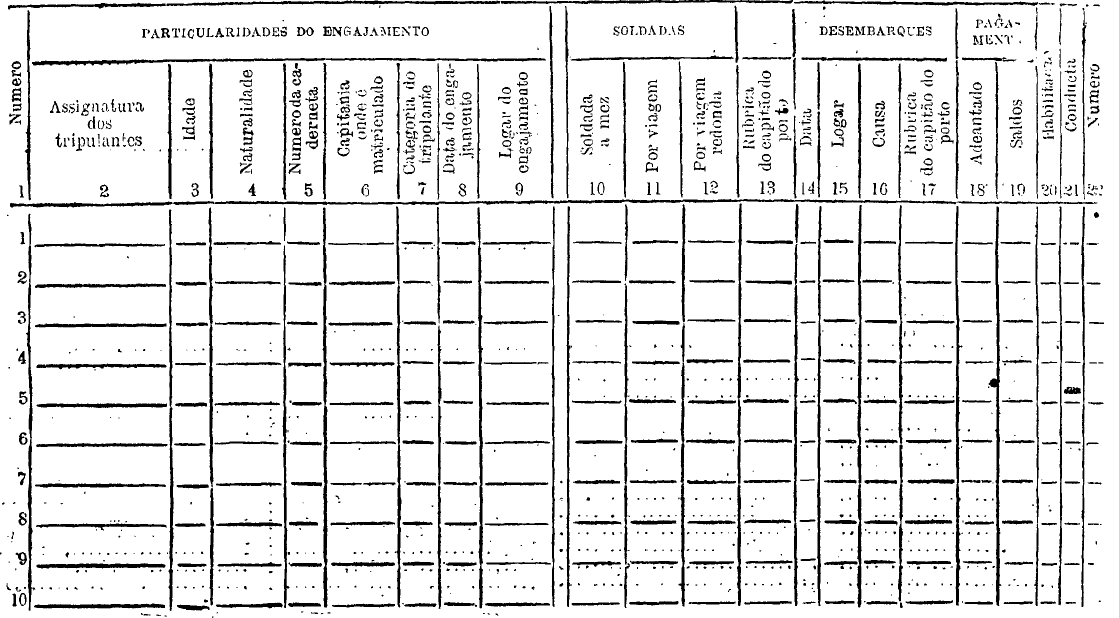 renovação de róes de equipagem e averbações nestes em cada porto de escala,